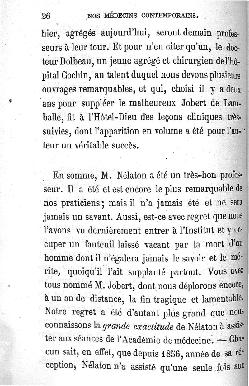 Nos médecins contemporains, par Paul Labarthe... Velpeau, Nélaton, Ricord, Trousseau, Tardieu, Bouillaud, Piorry, Wurtz, Robin, Pajot...