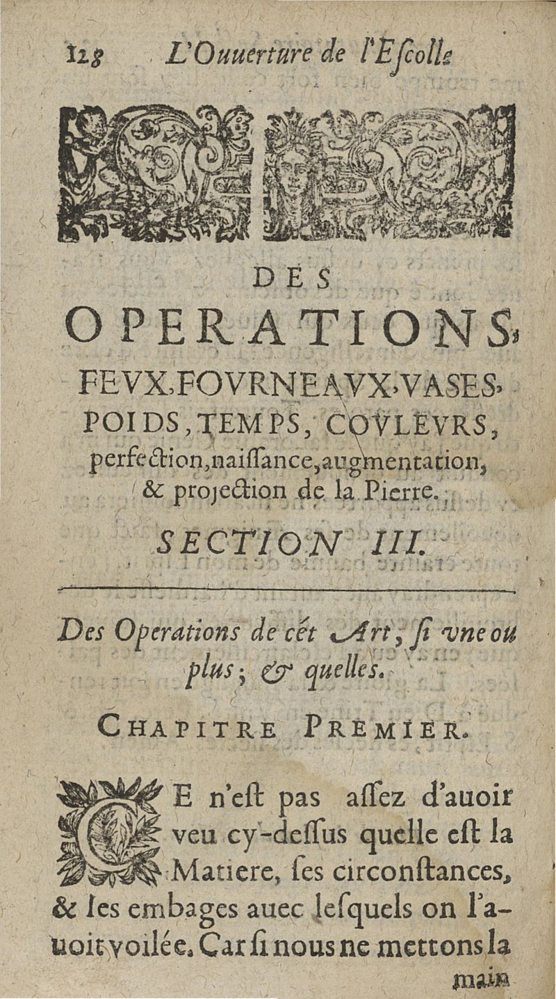 L'ouverture de l'Escolle de philosophie transmutatoire metallique ou la plus saine et veritable explication & consiliation de tous les stiles desquels les philosophes anciens se sont servis en traictant de l'oeuvre physique sont amplement declarées