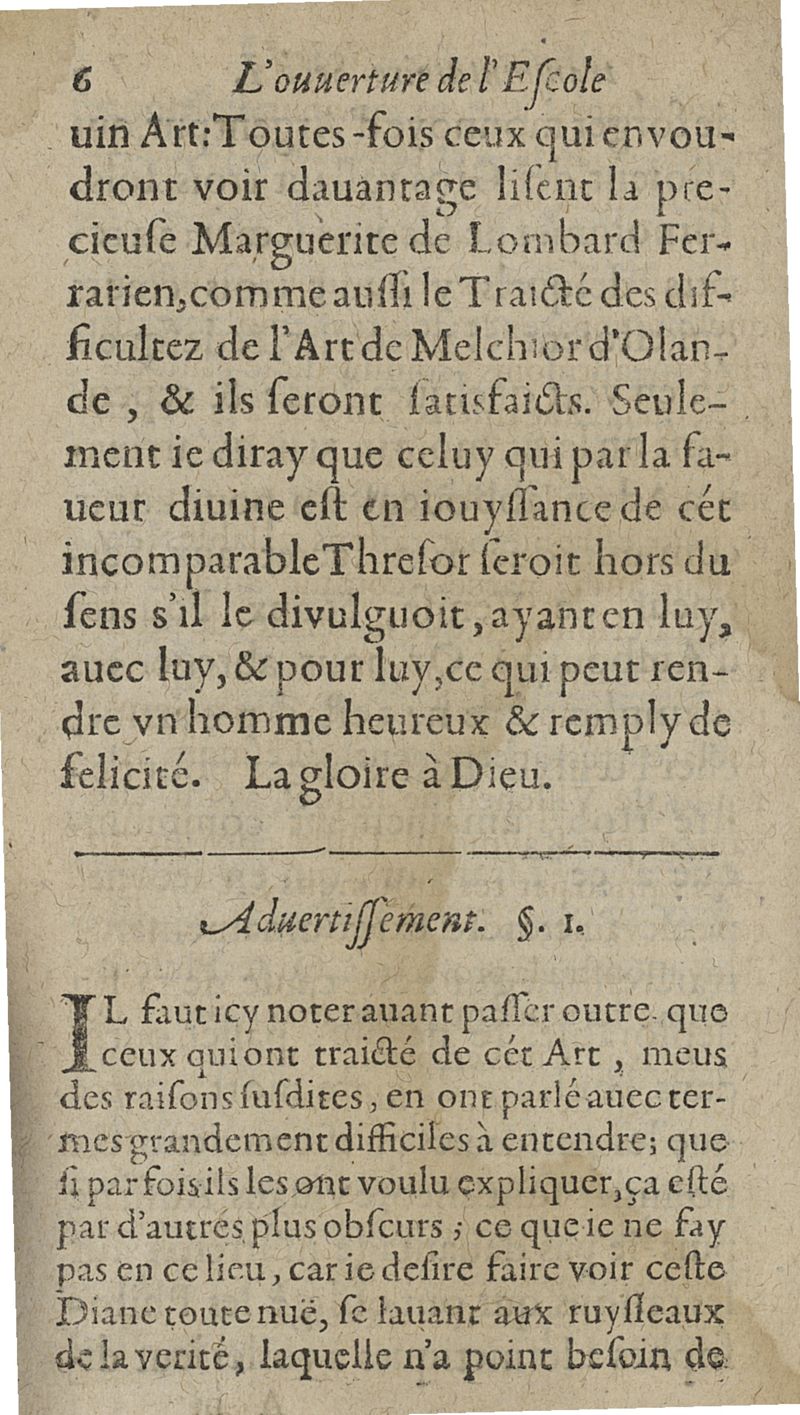 L'ouverture de l'Escolle de philosophie transmutatoire metallique ou la plus saine et veritable explication & consiliation de tous les stiles desquels les philosophes anciens se sont servis en traictant de l'oeuvre physique sont amplement declarées