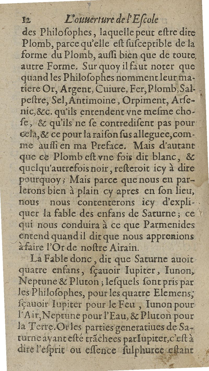 L'ouverture de l'Escolle de philosophie transmutatoire metallique ou la plus saine et veritable explication & consiliation de tous les stiles desquels les philosophes anciens se sont servis en traictant de l'oeuvre physique sont amplement declarées