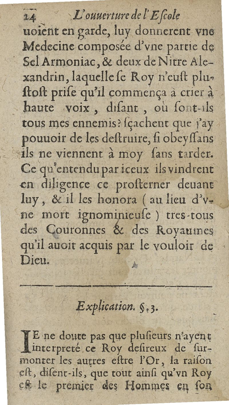 L'ouverture de l'Escolle de philosophie transmutatoire metallique ou la plus saine et veritable explication & consiliation de tous les stiles desquels les philosophes anciens se sont servis en traictant de l'oeuvre physique sont amplement declarées