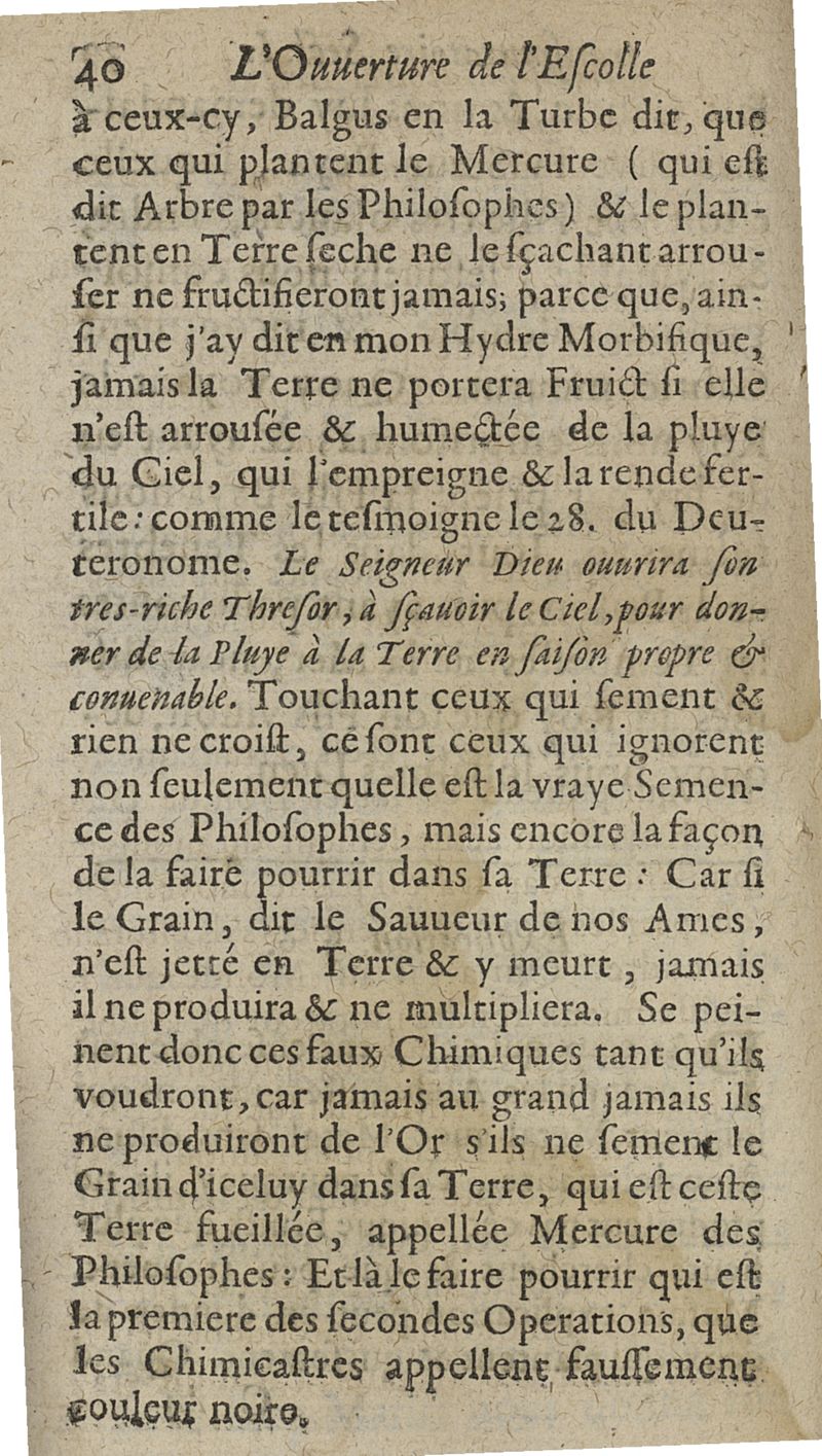 L'ouverture de l'Escolle de philosophie transmutatoire metallique ou la plus saine et veritable explication & consiliation de tous les stiles desquels les philosophes anciens se sont servis en traictant de l'oeuvre physique sont amplement declarées