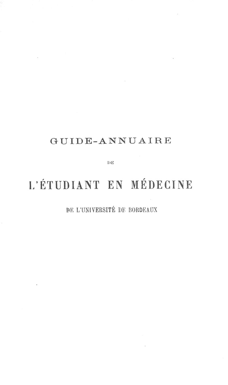 Guide-Annuaire de l'étudiant en médecine de l'Université de Bordeaux, avec renseignements complémentaires sur les examens d'admission aux écoles du Service de santé militaire, à l'Ecole principale du Service de santé de la marine, sur l'enseignement dans les écoles secondaires de Limoges et de Poitiers