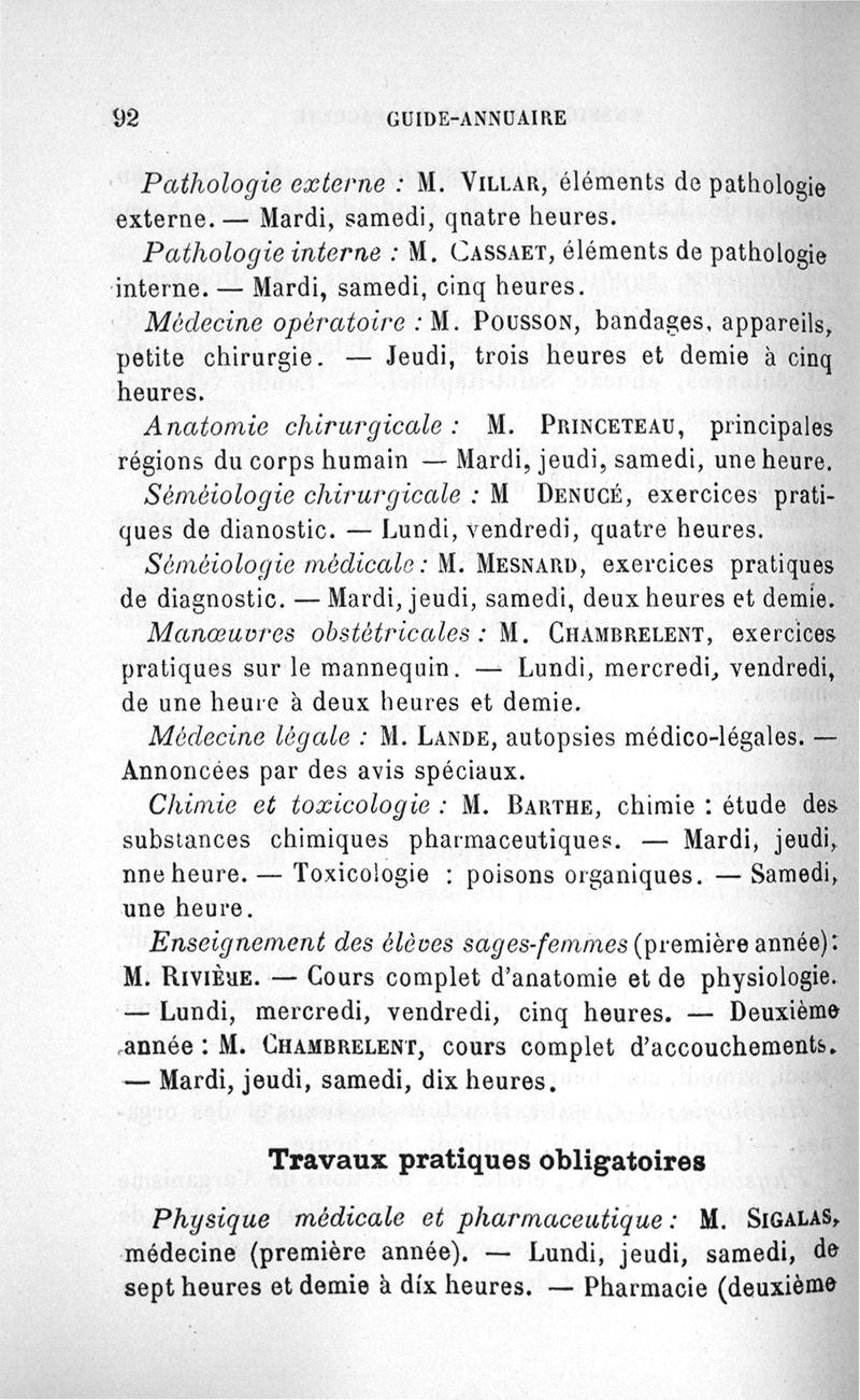 Guide-Annuaire de l'étudiant en médecine de l'Université de Bordeaux, avec renseignements complémentaires sur les examens d'admission aux écoles du Service de santé militaire, à l'Ecole principale du Service de santé de la marine, sur l'enseignement dans les écoles secondaires de Limoges et de Poitiers