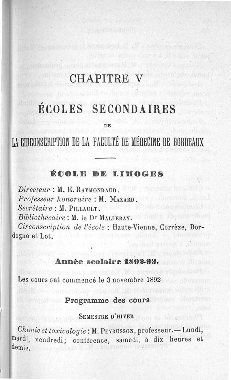Guide-Annuaire de l'étudiant en médecine de l'Université de Bordeaux, avec renseignements complémentaires sur les examens d'admission aux écoles du Service de santé militaire, à l'Ecole principale du Service de santé de la marine, sur l'enseignement dans les écoles secondaires de Limoges et de Poitiers
