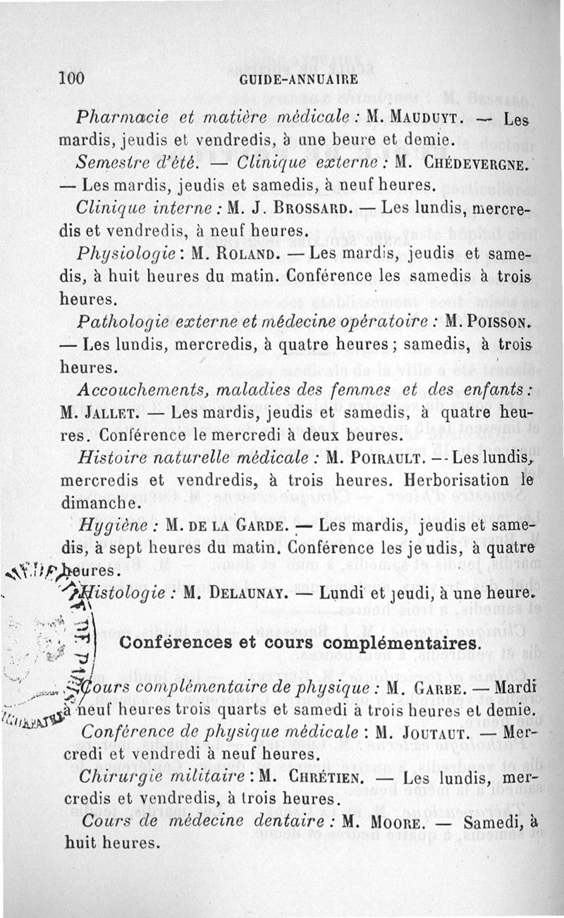 Guide-Annuaire de l'étudiant en médecine de l'Université de Bordeaux, avec renseignements complémentaires sur les examens d'admission aux écoles du Service de santé militaire, à l'Ecole principale du Service de santé de la marine, sur l'enseignement dans les écoles secondaires de Limoges et de Poitiers