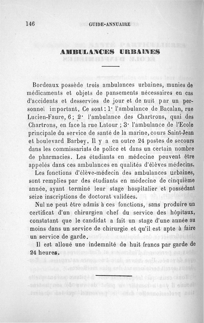 Guide-Annuaire de l'étudiant en médecine de l'Université de Bordeaux, avec renseignements complémentaires sur les examens d'admission aux écoles du Service de santé militaire, à l'Ecole principale du Service de santé de la marine, sur l'enseignement dans les écoles secondaires de Limoges et de Poitiers