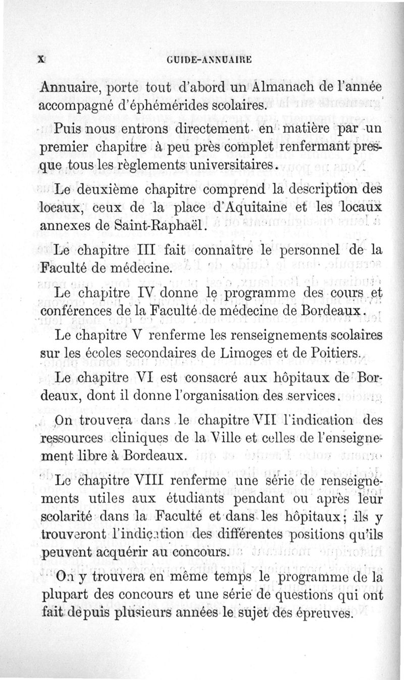 Guide-Annuaire de l'étudiant en médecine de l'Université de Bordeaux, avec renseignements complémentaires sur les examens d'admission aux écoles du Service de santé militaire, à l'Ecole principale du Service de santé de la marine, sur l'enseignement dans les écoles secondaires de Limoges et de Poitiers