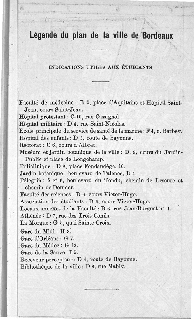 Guide-Annuaire de l'étudiant en médecine de l'Université de Bordeaux, avec renseignements complémentaires sur les examens d'admission aux écoles du Service de santé militaire, à l'Ecole principale du Service de santé de la marine, sur l'enseignement dans les écoles secondaires de Limoges et de Poitiers