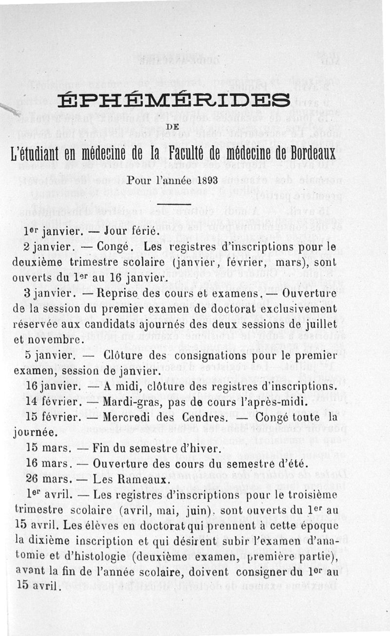Guide-Annuaire de l'étudiant en médecine de l'Université de Bordeaux, avec renseignements complémentaires sur les examens d'admission aux écoles du Service de santé militaire, à l'Ecole principale du Service de santé de la marine, sur l'enseignement dans les écoles secondaires de Limoges et de Poitiers