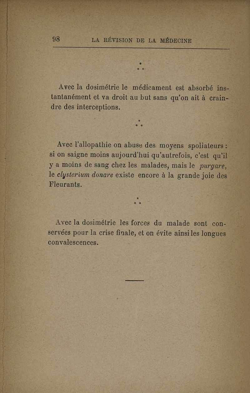 Révision de la médecine par la méthode dosimétrique