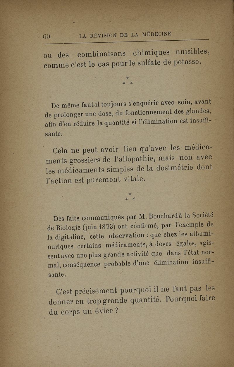 Révision de la médecine par la méthode dosimétrique