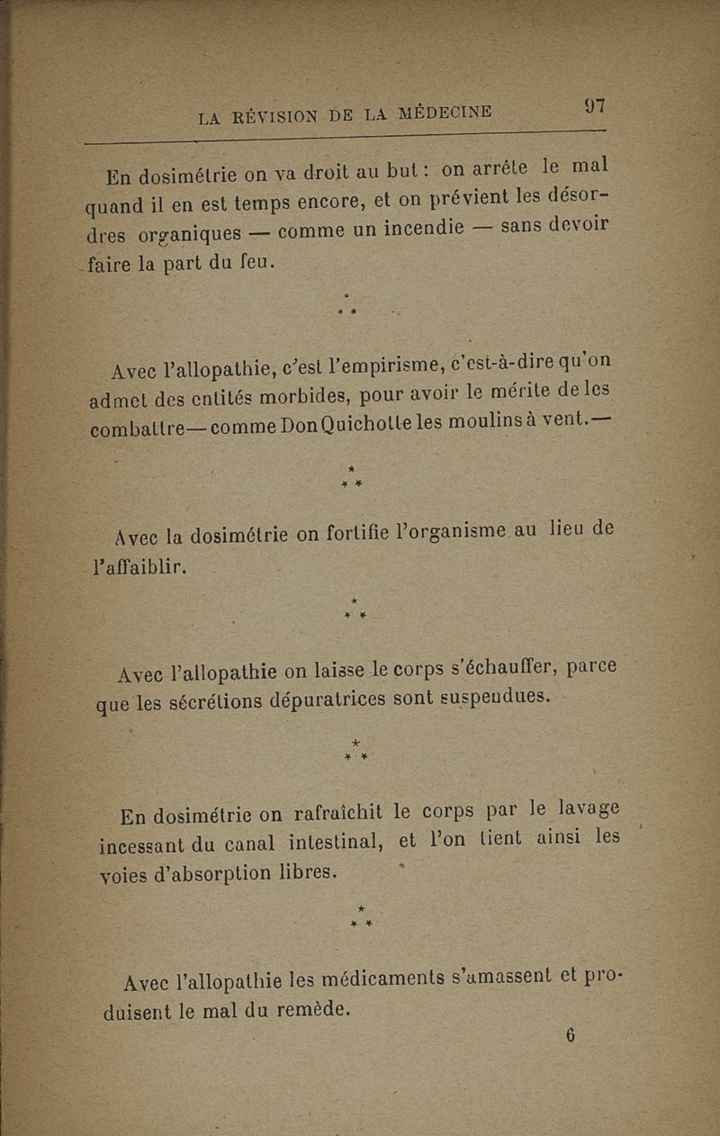 Révision de la médecine par la méthode dosimétrique