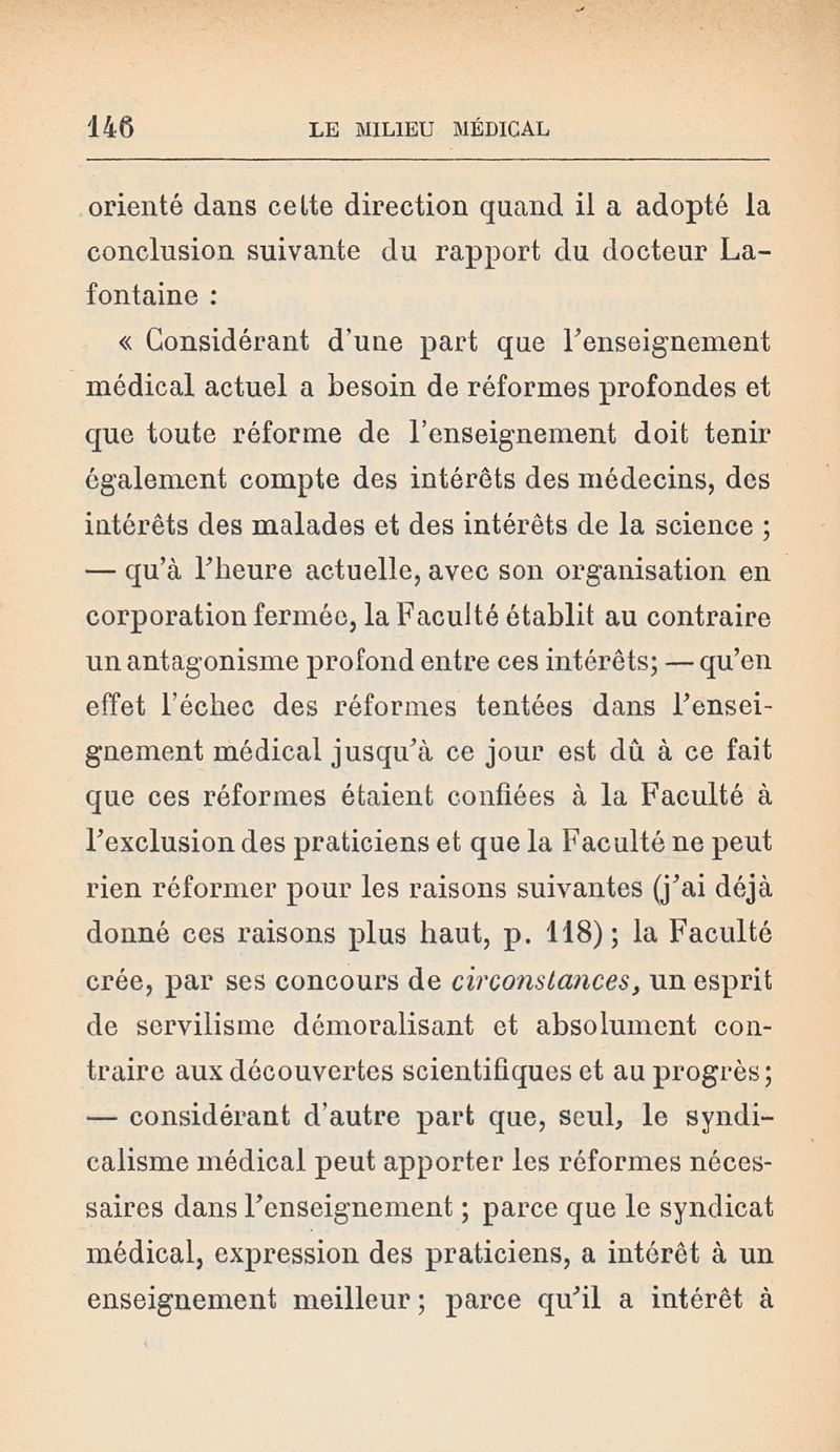 Le milieu médical et la question médicosociale