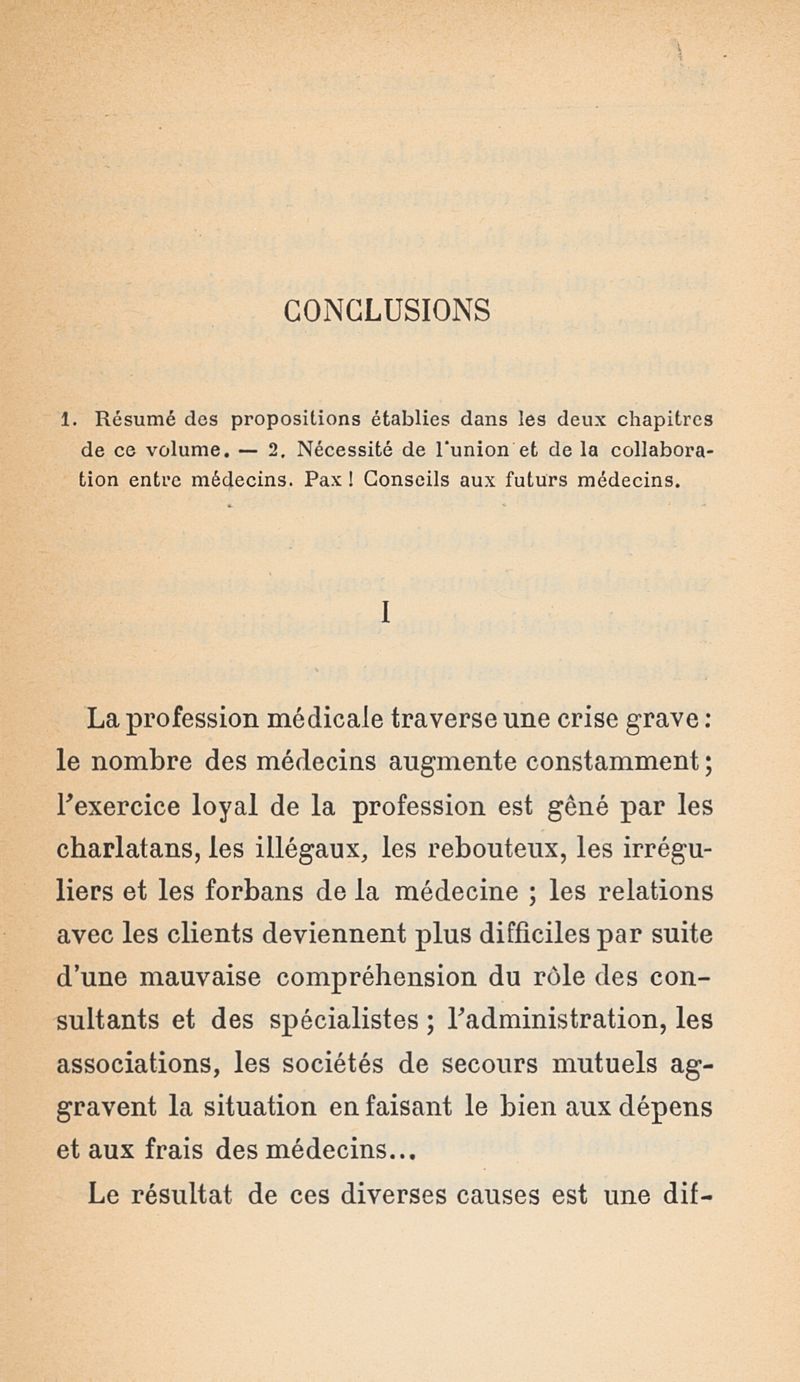 Le milieu médical et la question médicosociale