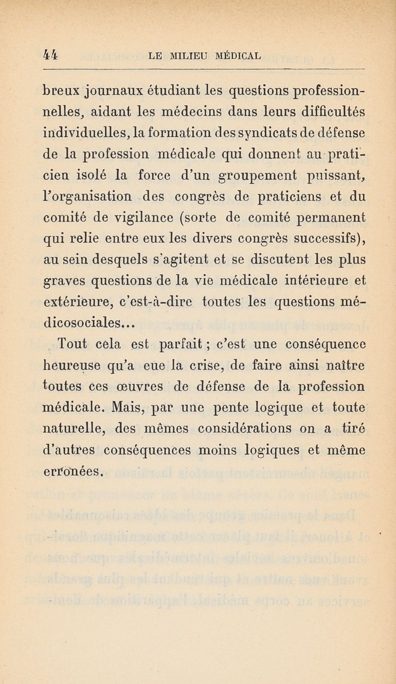 Le milieu médical et la question médicosociale