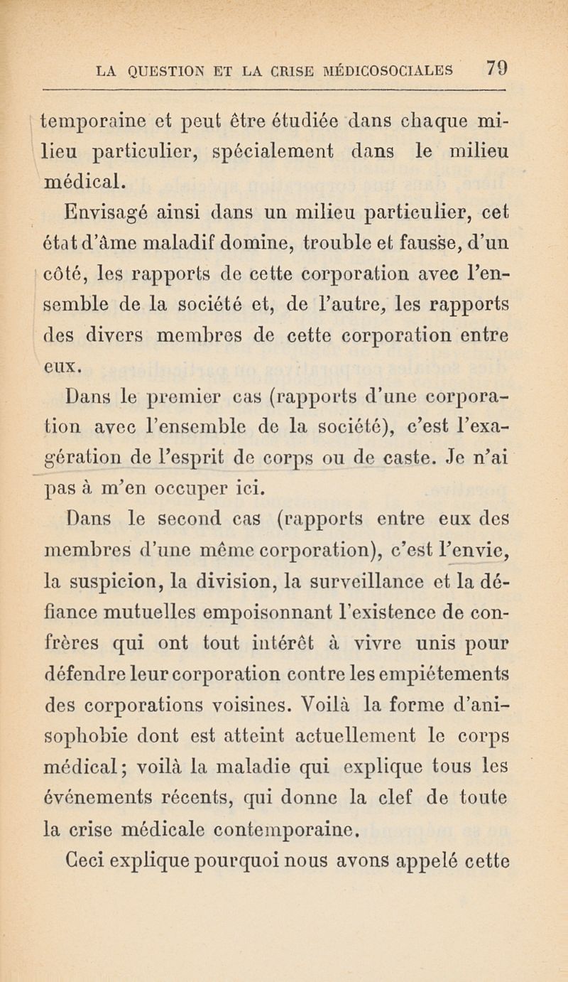 Le milieu médical et la question médicosociale