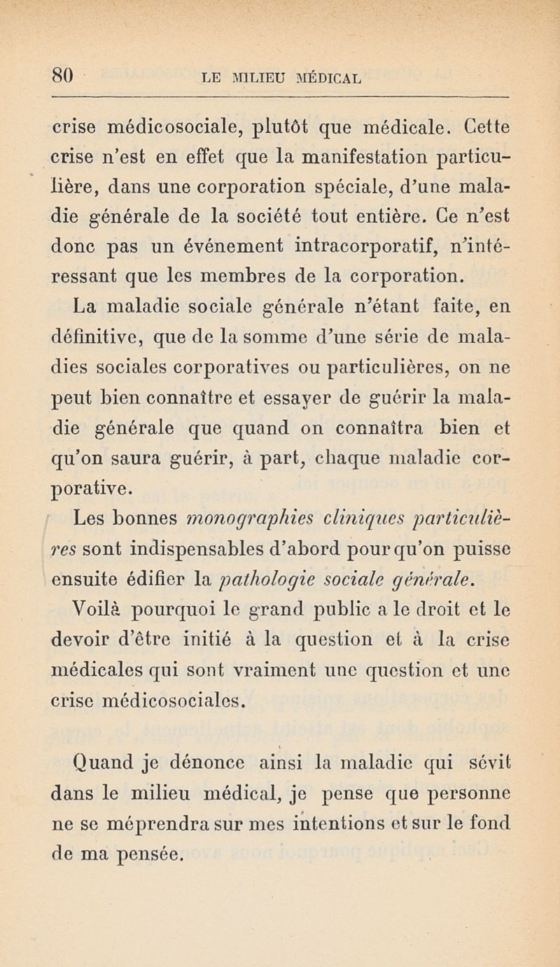 Le milieu médical et la question médicosociale