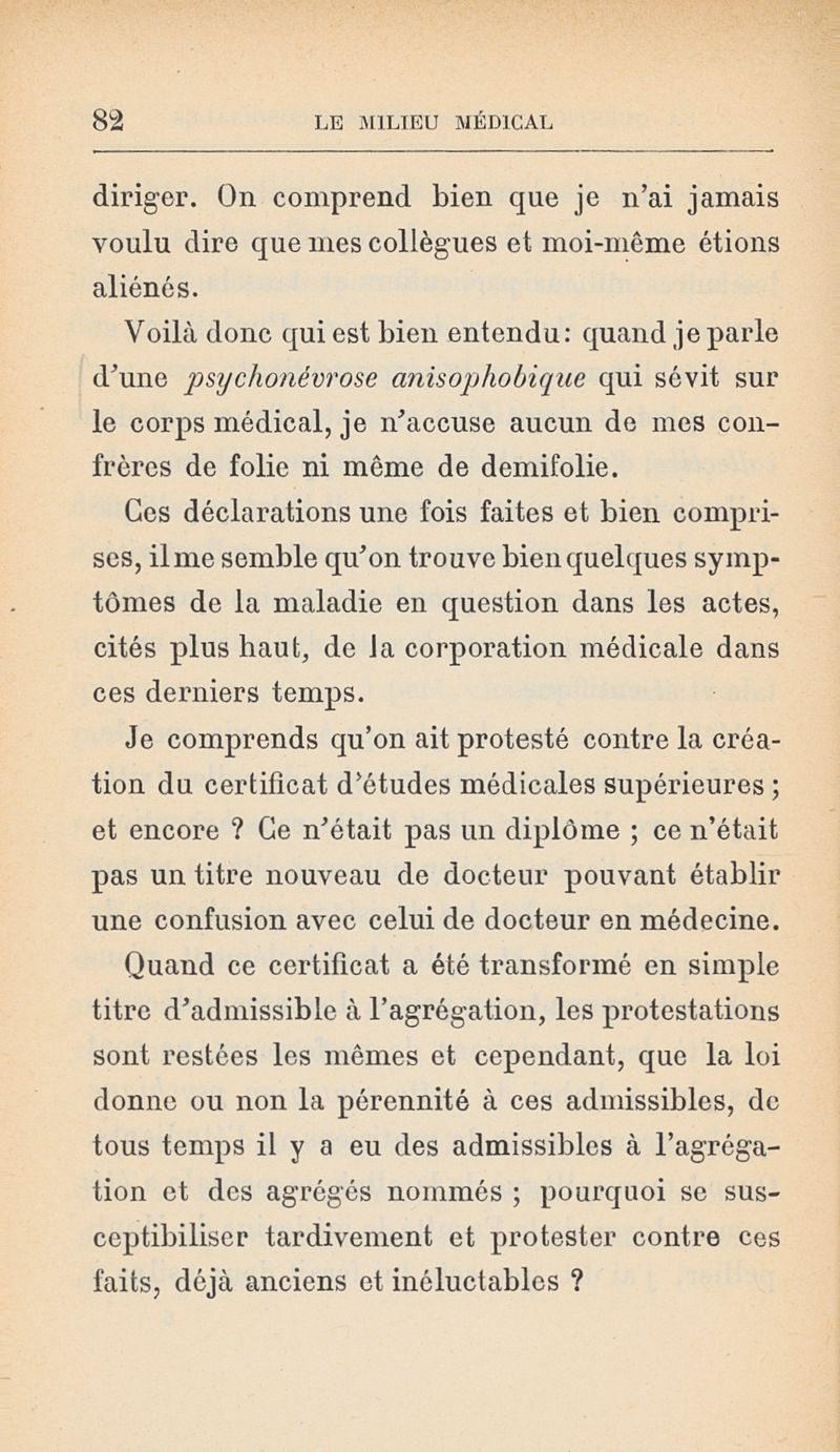 Le milieu médical et la question médicosociale