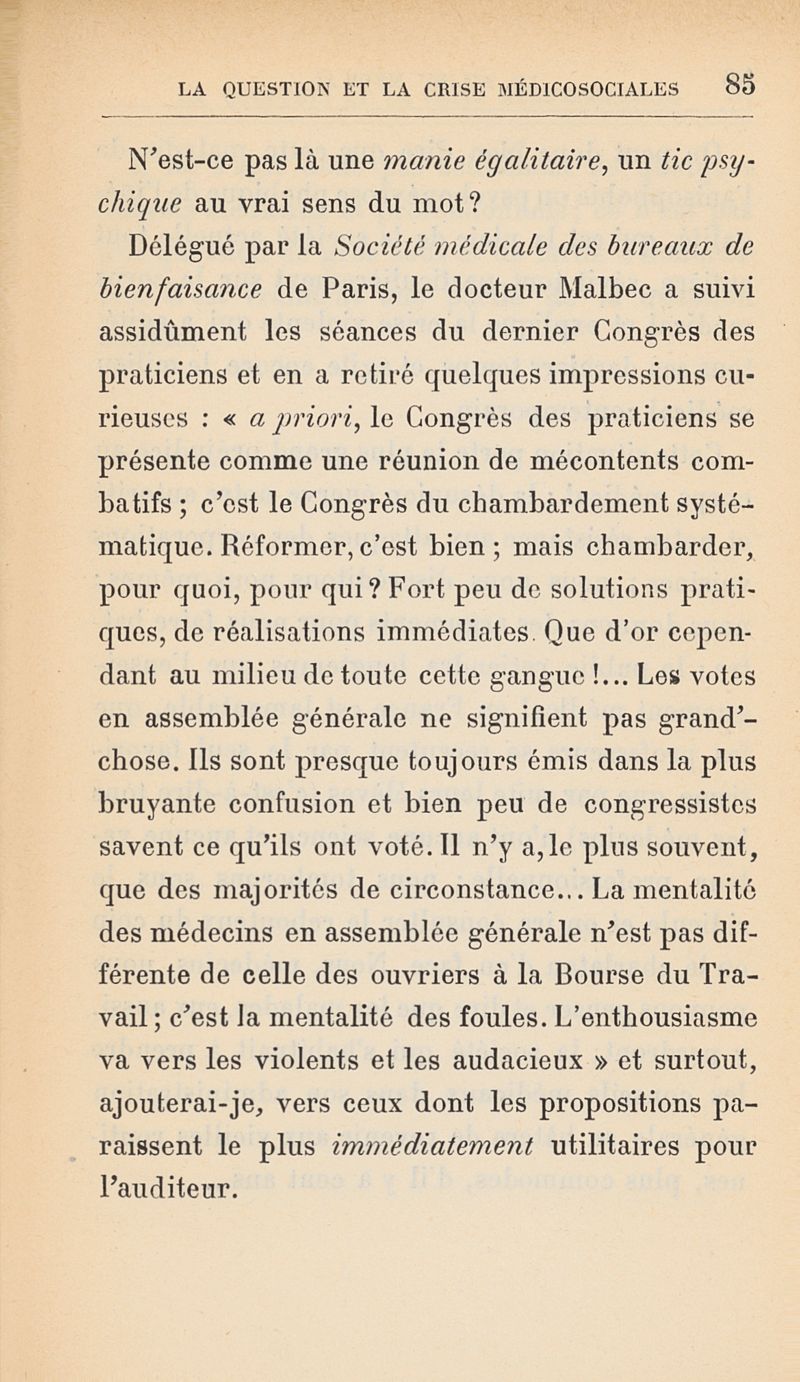 Le milieu médical et la question médicosociale