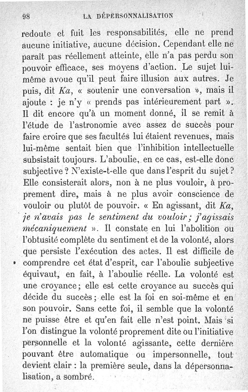 La dépersonnalisation