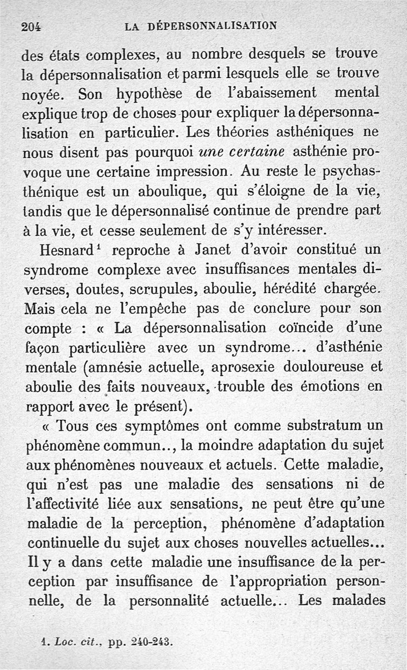 La dépersonnalisation