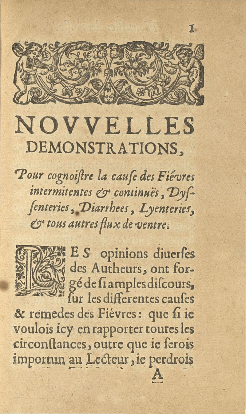 Nouvelles demonstrations, pour cognoistre la cause des fièvres intermitantes & continuës, dysenteries, dyarrhees, lysenteries, é tout autre flux de ventre. Avec un ample & asseuré prognostic sur chacune d'icelles, & les remedes specifiques pour leur guerison