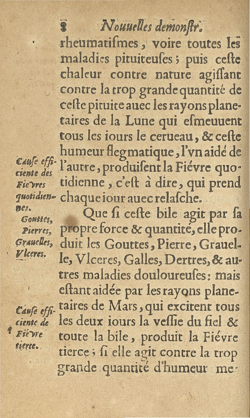 Nouvelles demonstrations, pour cognoistre la cause des fièvres intermitantes & continuës, dysenteries, dyarrhees, lysenteries, é tout autre flux de ventre. Avec un ample & asseuré prognostic sur chacune d'icelles, & les remedes specifiques pour leur guerison
