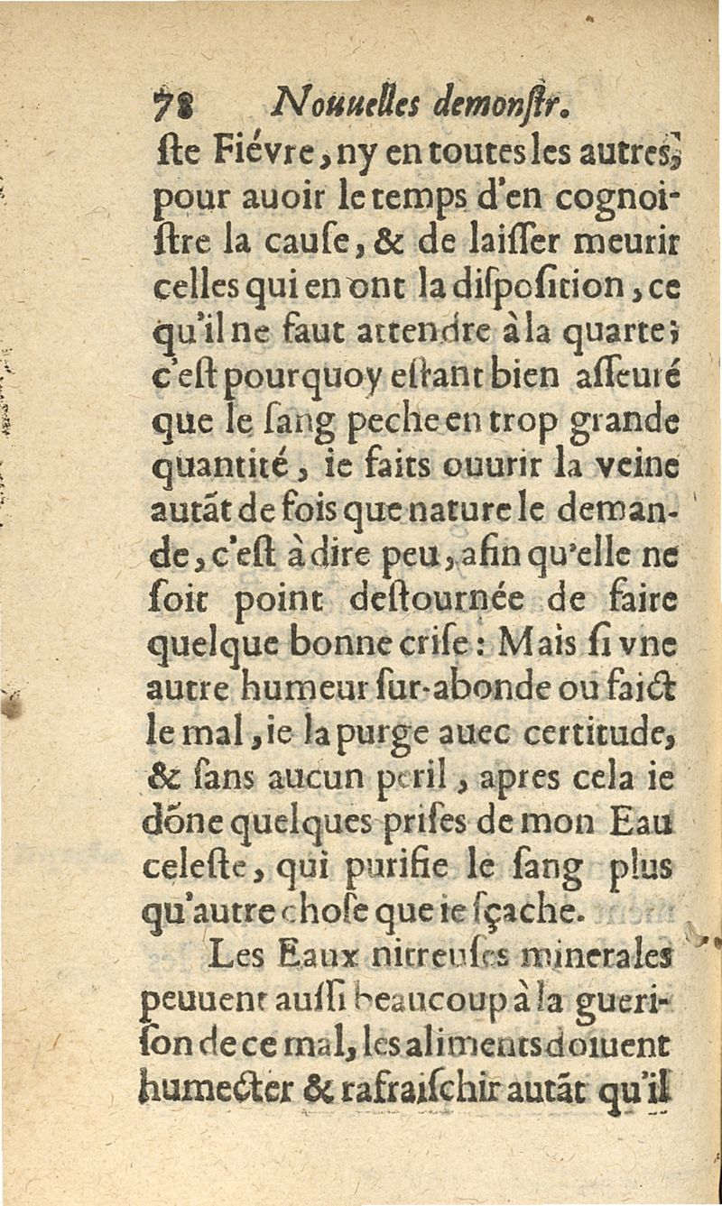 Nouvelles demonstrations, pour cognoistre la cause des fièvres intermitantes & continuës, dysenteries, dyarrhees, lysenteries, é tout autre flux de ventre. Avec un ample & asseuré prognostic sur chacune d'icelles, & les remedes specifiques pour leur guerison