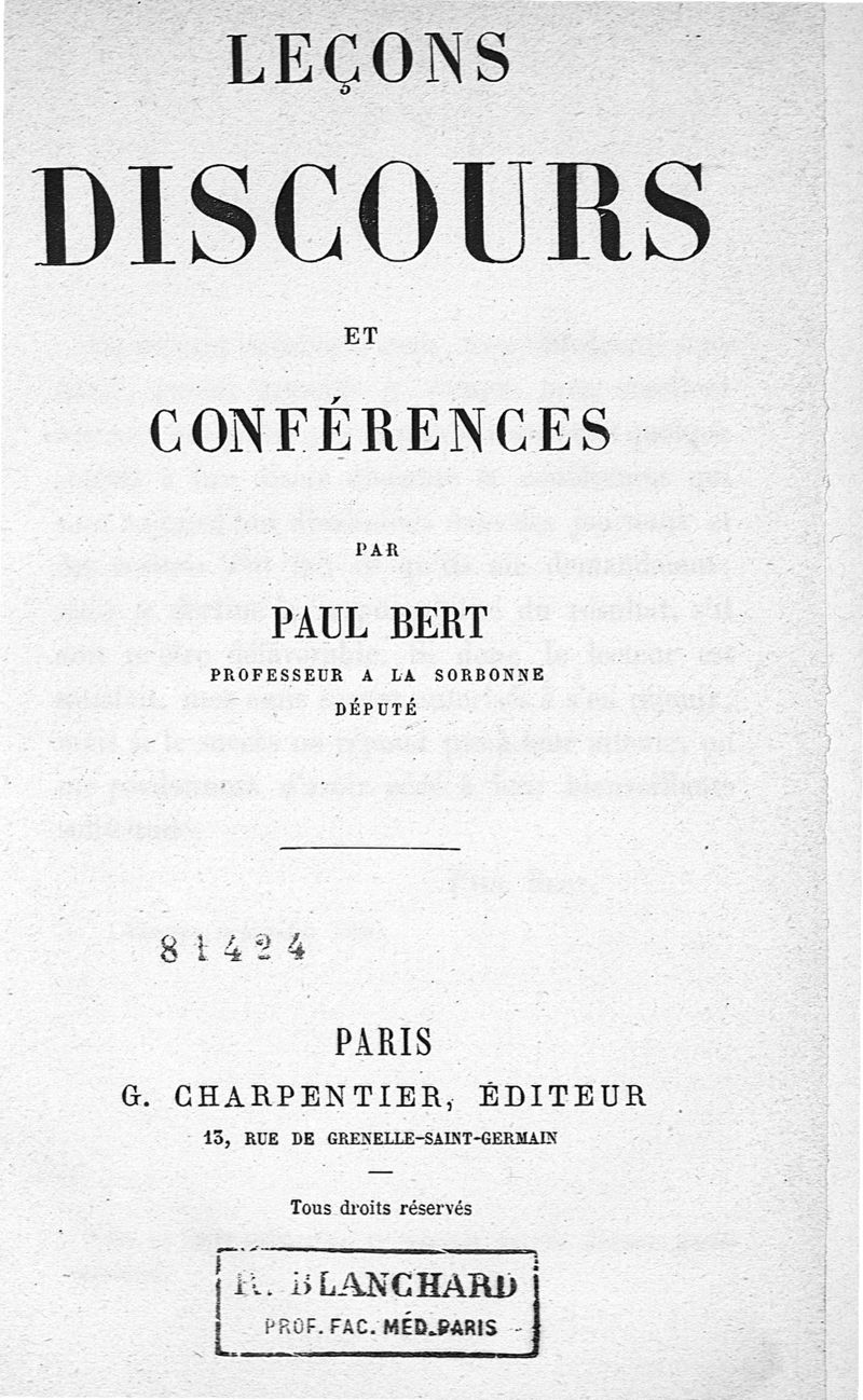 Leçons, discours et conférences, par Paul Bert