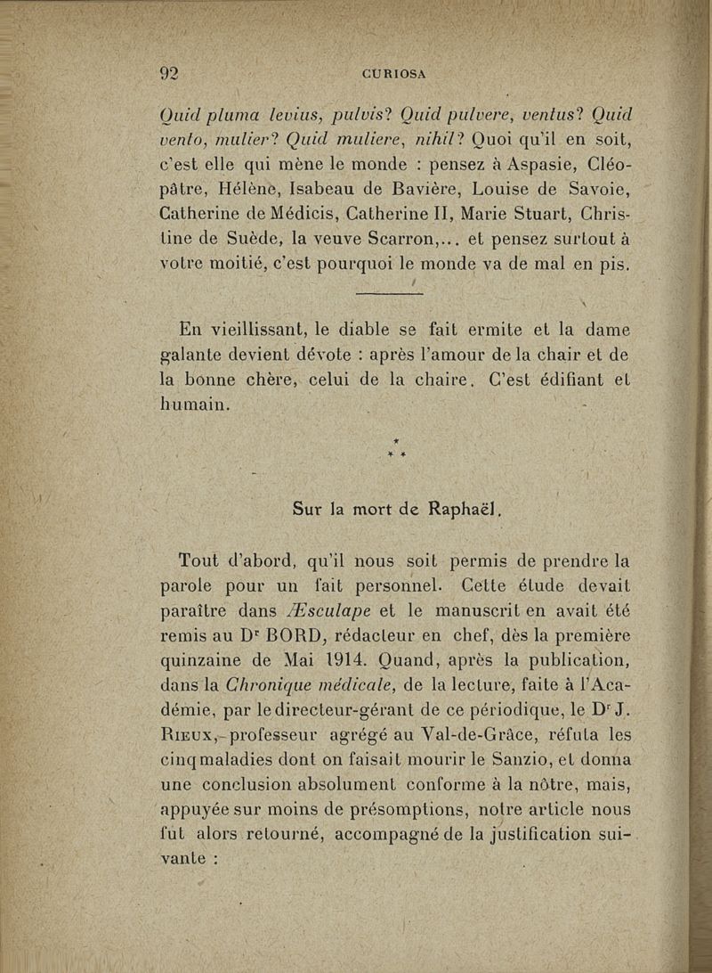 Curiosa de médecine littéraire - anecdotique - artistique
