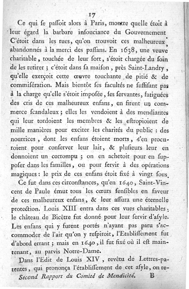Rapport fait au nom du comité de mendicité, des visites faites dans les hôpitaux, hospices et maisons de charité de Paris, [suivi] du second rapport du comité de mendicité, état actuel de la législation du Royaume, relativement aux hôpitaux, et à la mendicité