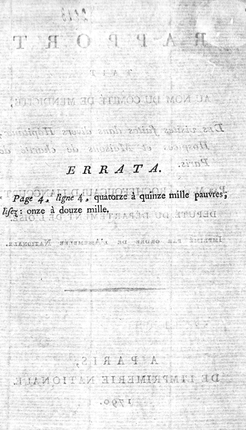 Rapport fait au nom du comité de mendicité, des visites faites dans les hôpitaux, hospices et maisons de charité de Paris, [suivi] du second rapport du comité de mendicité, état actuel de la législation du Royaume, relativement aux hôpitaux, et à la mendicité