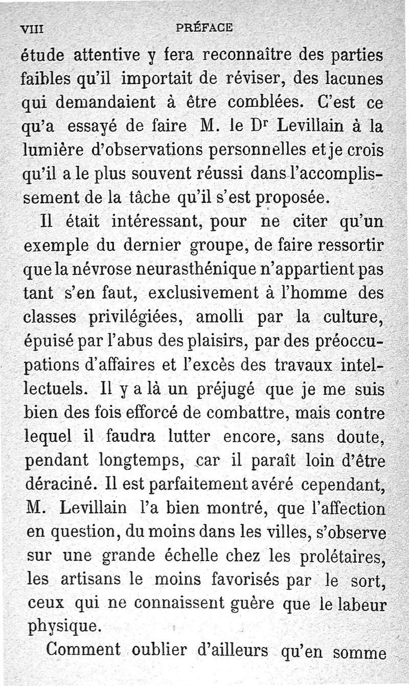 La neurasthénie, maladie de Beard, méthodes de Weir-Mitchell et Playfair, traitement de Vigouroux ; avec une préface du Pr Charcot et suivie d'une note thérapeutique par le Dr Vigouroux