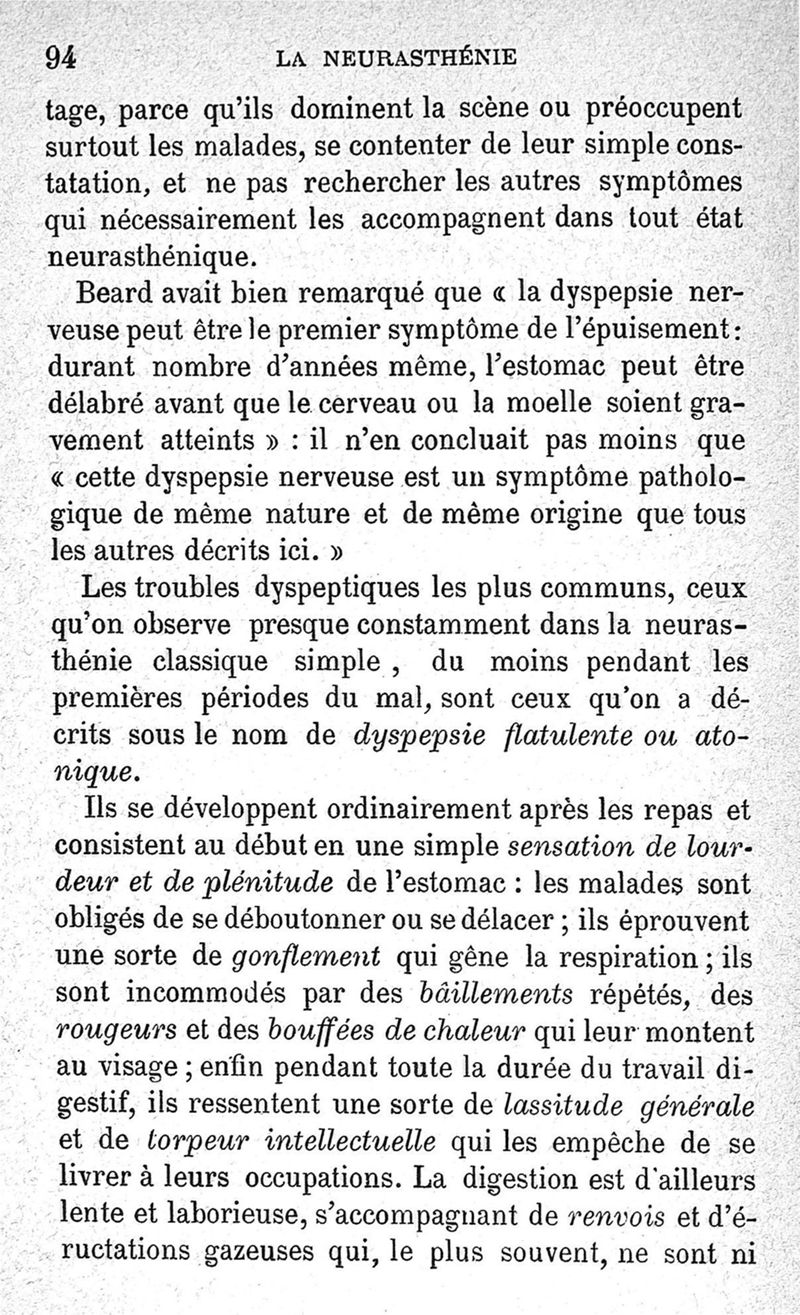La neurasthénie, maladie de Beard, méthodes de Weir-Mitchell et Playfair, traitement de Vigouroux ; avec une préface du Pr Charcot et suivie d'une note thérapeutique par le Dr Vigouroux