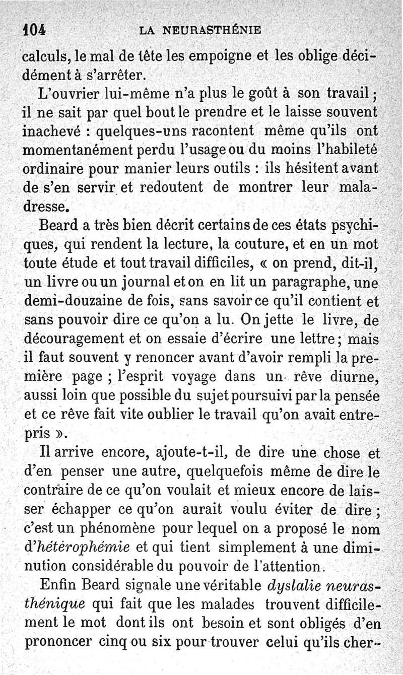 La neurasthénie, maladie de Beard, méthodes de Weir-Mitchell et Playfair, traitement de Vigouroux ; avec une préface du Pr Charcot et suivie d'une note thérapeutique par le Dr Vigouroux