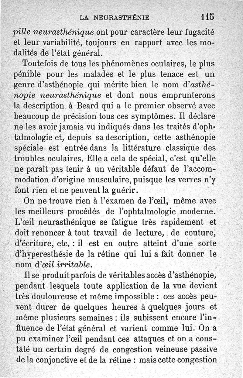 La neurasthénie, maladie de Beard, méthodes de Weir-Mitchell et Playfair, traitement de Vigouroux ; avec une préface du Pr Charcot et suivie d'une note thérapeutique par le Dr Vigouroux