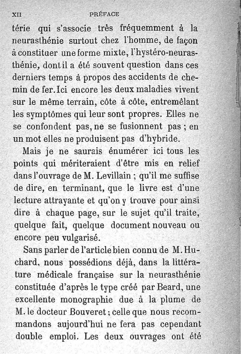 La neurasthénie, maladie de Beard, méthodes de Weir-Mitchell et Playfair, traitement de Vigouroux ; avec une préface du Pr Charcot et suivie d'une note thérapeutique par le Dr Vigouroux
