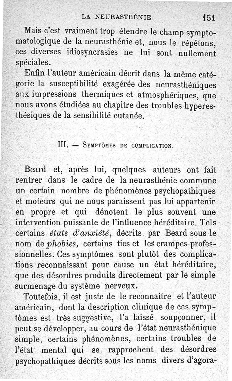 La neurasthénie, maladie de Beard, méthodes de Weir-Mitchell et Playfair, traitement de Vigouroux ; avec une préface du Pr Charcot et suivie d'une note thérapeutique par le Dr Vigouroux