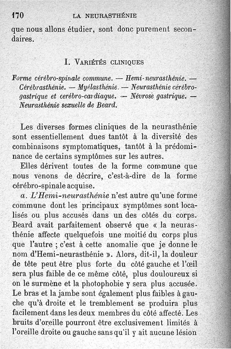 La neurasthénie, maladie de Beard, méthodes de Weir-Mitchell et Playfair, traitement de Vigouroux ; avec une préface du Pr Charcot et suivie d'une note thérapeutique par le Dr Vigouroux