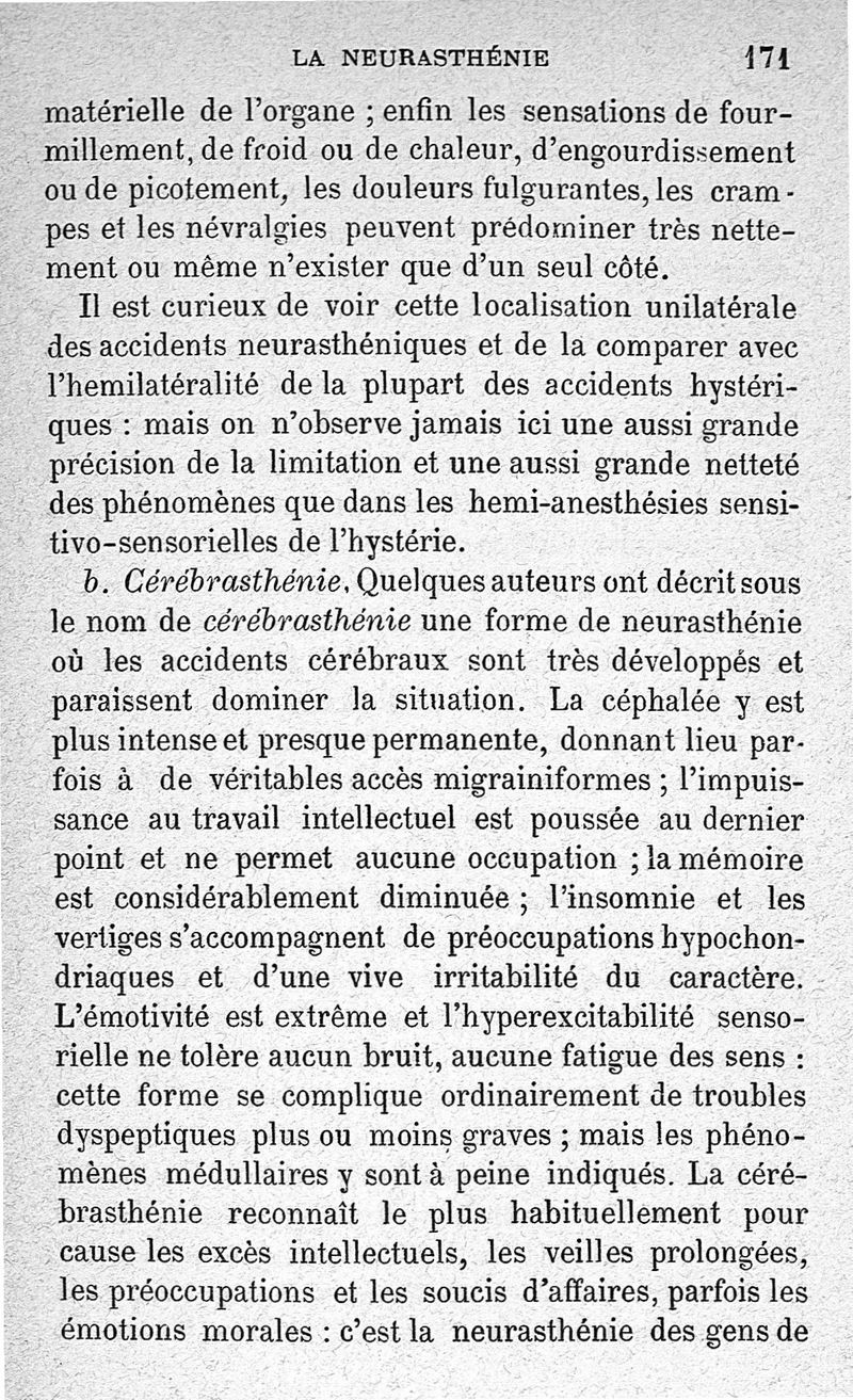 La neurasthénie, maladie de Beard, méthodes de Weir-Mitchell et Playfair, traitement de Vigouroux ; avec une préface du Pr Charcot et suivie d'une note thérapeutique par le Dr Vigouroux