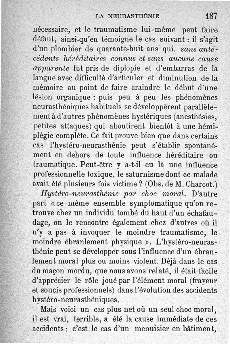 La neurasthénie, maladie de Beard, méthodes de Weir-Mitchell et Playfair, traitement de Vigouroux ; avec une préface du Pr Charcot et suivie d'une note thérapeutique par le Dr Vigouroux
