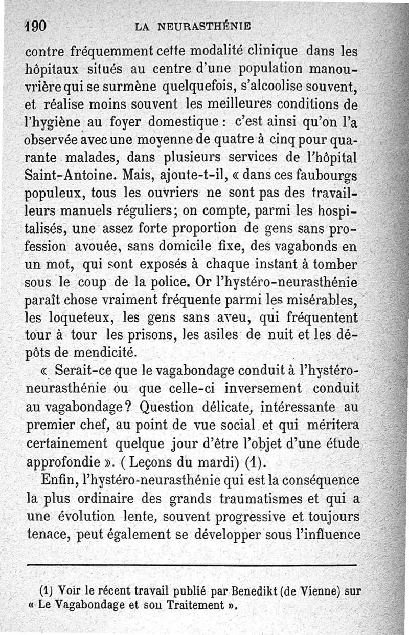 La neurasthénie, maladie de Beard, méthodes de Weir-Mitchell et Playfair, traitement de Vigouroux ; avec une préface du Pr Charcot et suivie d'une note thérapeutique par le Dr Vigouroux