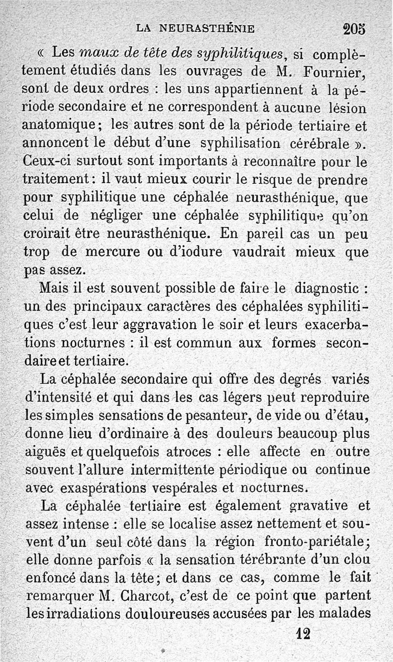 La neurasthénie, maladie de Beard, méthodes de Weir-Mitchell et Playfair, traitement de Vigouroux ; avec une préface du Pr Charcot et suivie d'une note thérapeutique par le Dr Vigouroux