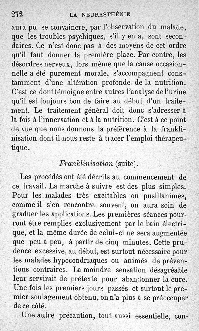 La neurasthénie, maladie de Beard, méthodes de Weir-Mitchell et Playfair, traitement de Vigouroux ; avec une préface du Pr Charcot et suivie d'une note thérapeutique par le Dr Vigouroux
