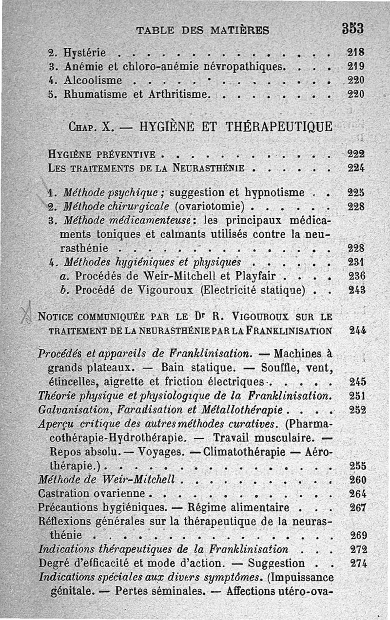 La neurasthénie, maladie de Beard, méthodes de Weir-Mitchell et Playfair, traitement de Vigouroux ; avec une préface du Pr Charcot et suivie d'une note thérapeutique par le Dr Vigouroux