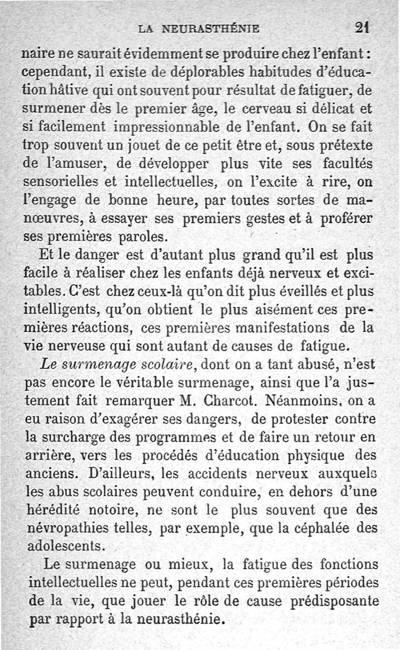 La neurasthénie, maladie de Beard, méthodes de Weir-Mitchell et Playfair, traitement de Vigouroux ; avec une préface du Pr Charcot et suivie d'une note thérapeutique par le Dr Vigouroux