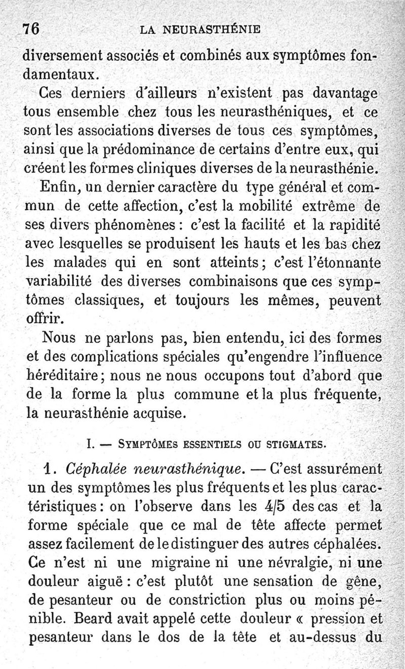 La neurasthénie, maladie de Beard, méthodes de Weir-Mitchell et Playfair, traitement de Vigouroux ; avec une préface du Pr Charcot et suivie d'une note thérapeutique par le Dr Vigouroux
