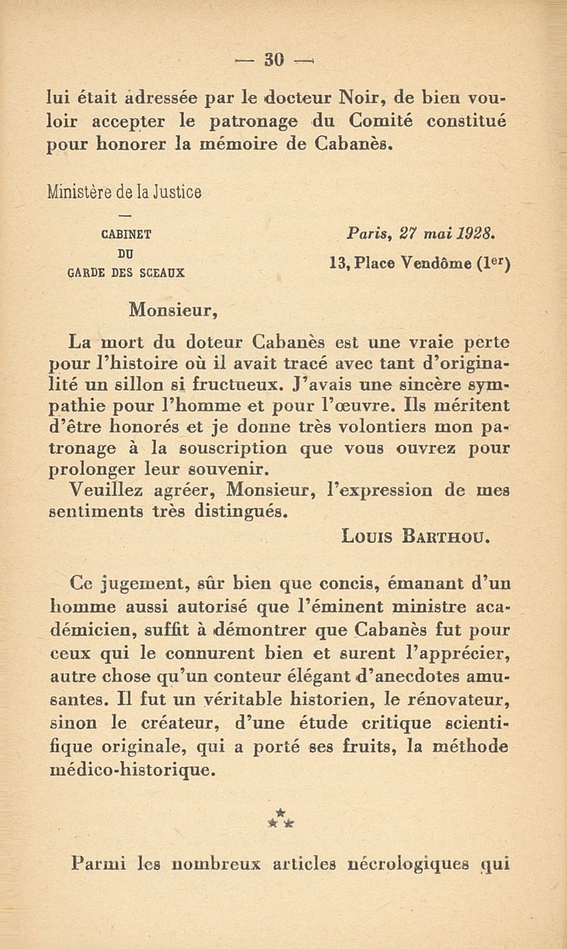 Le docteur Cabanès - Discours prononcés à l'Inauguration du Monument élevé à Gourdon (Lot) le 1er septembre 1929