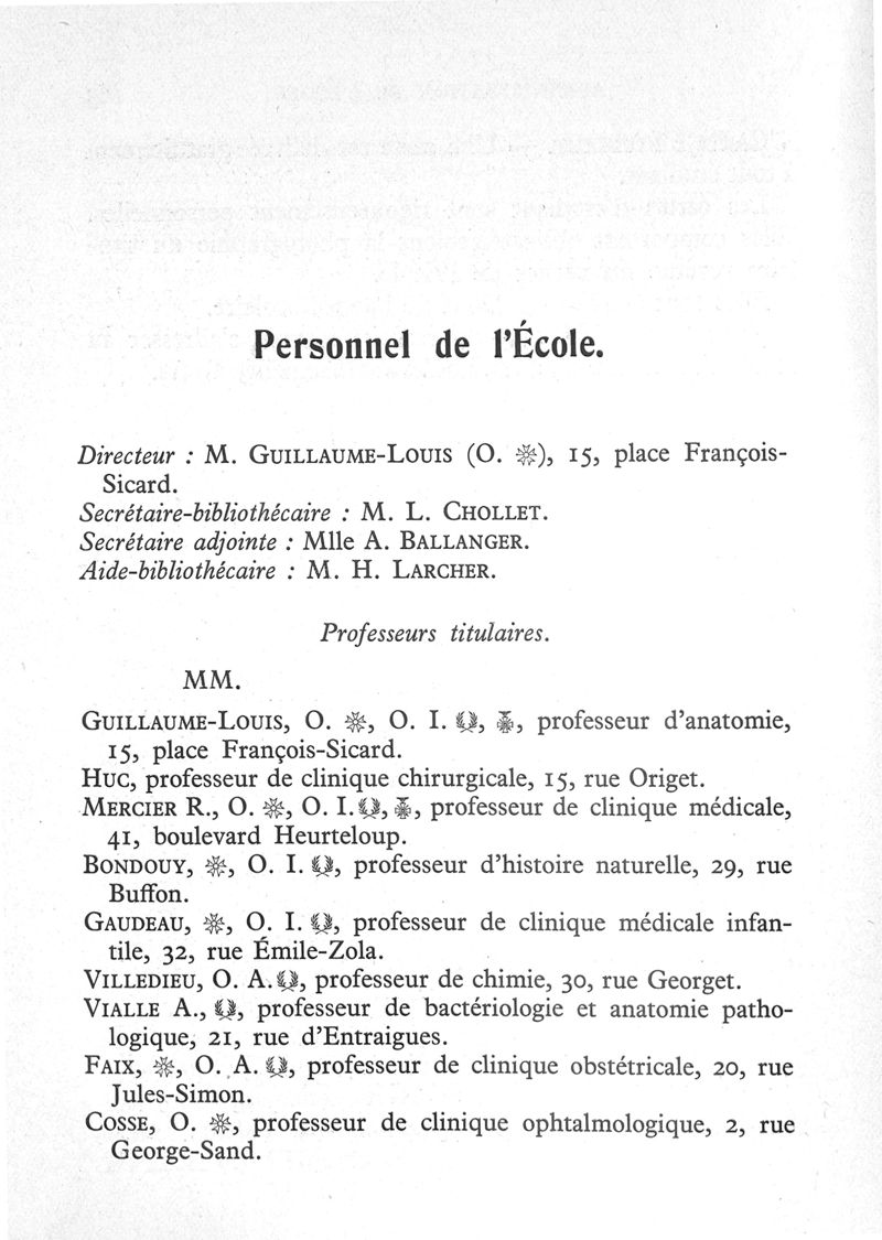 École de plein exercice de médecine et de pharmacie de Tours (Université de Poitiers)(Editeur scientifique) / Guillaume-Louis, Paul / Chollet, Louis.